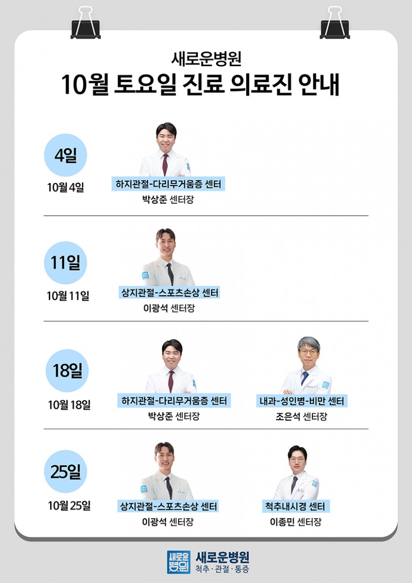 [병원 소식] 새로운병원 10월 토요일 진료 안내