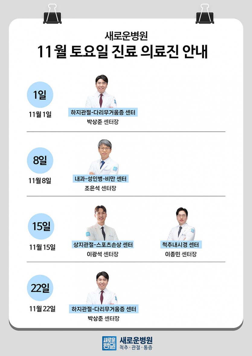 [병원 소식] 새로운병원 11월 토요 진료 안내